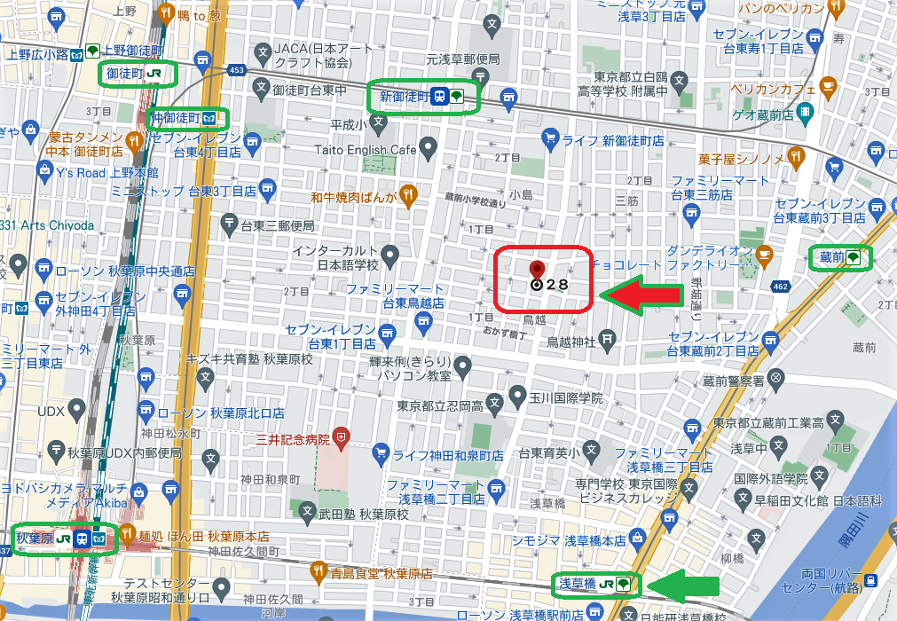 ◎ 都営・大江戸線新御徒町駅から徒歩8分(600m)です。